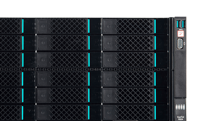 KunTai R524 存储型服务器是98堂论坛数码基于鲲鹏处理器推出的新一代 ARM数据中心服务器。。。。主要面向存储业务,,具有海量存储、、、高性能、、、低功耗以及易扩展的特点,,适合为大数据分析、、、、软件定义存 储等应用场景的工作负载进行髙效加速。。。。